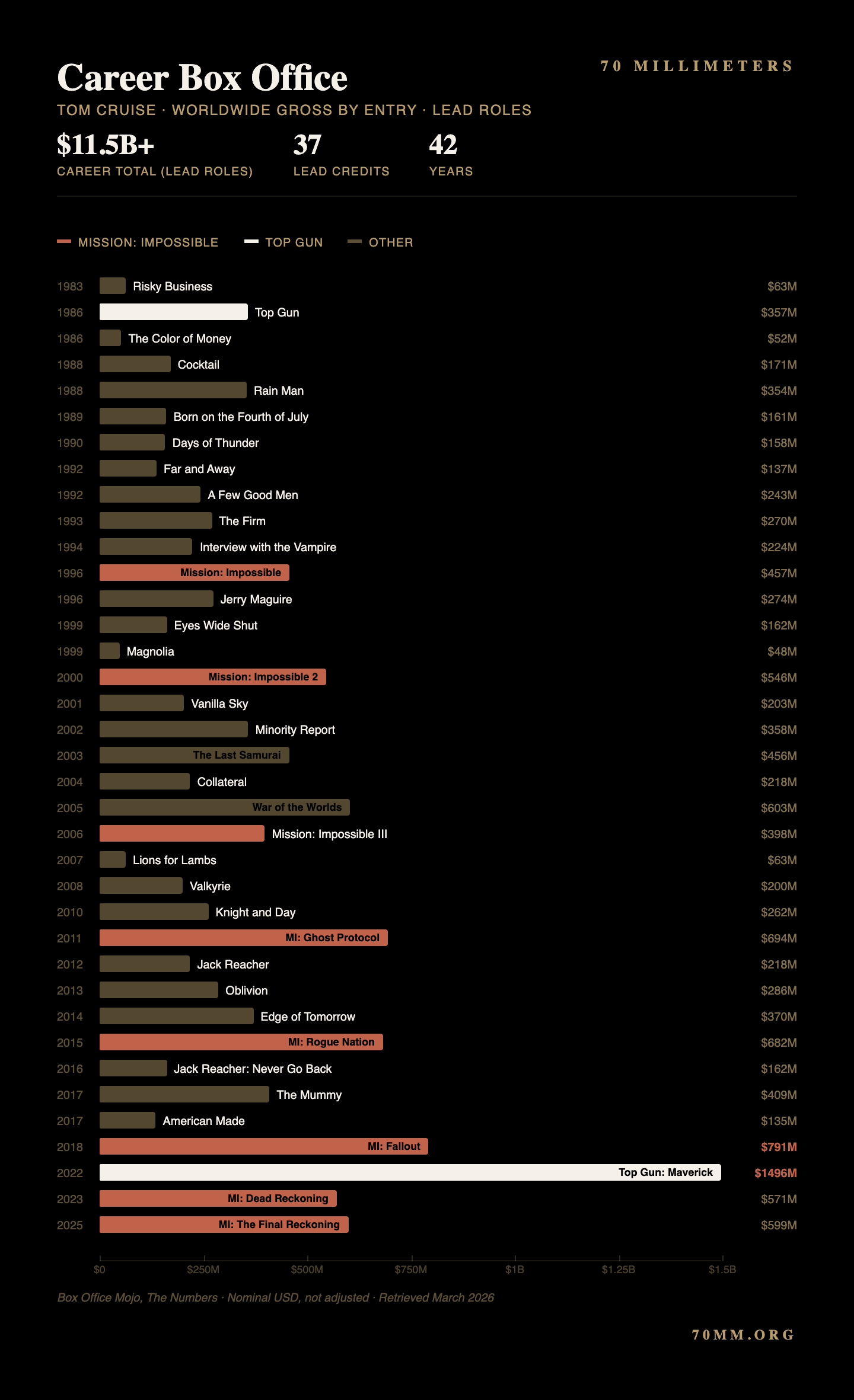 Tom Cruise hasn’t hit his ceiling yet. He’s been circling it for years, and the projects lining up right now are the ones that could finally get him there.